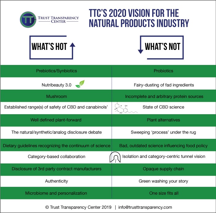 The other elements we were looking for as we gazed into 2020 were more behavioral and here reader, you’ll have to help us out. We were looking for more category-based collaboration (things like category-based research and messaging), more supply chain transparency like disclosure of country of origin, contract manufacturers and contract labs, and ever-increasing authenticity. Maybe I’m just a tad jaded, but I’m not sure we’ve seen those last three increase appreciably. The first, ‘collaboration’, was also reflected in our ‘what’s not’ – isolation.