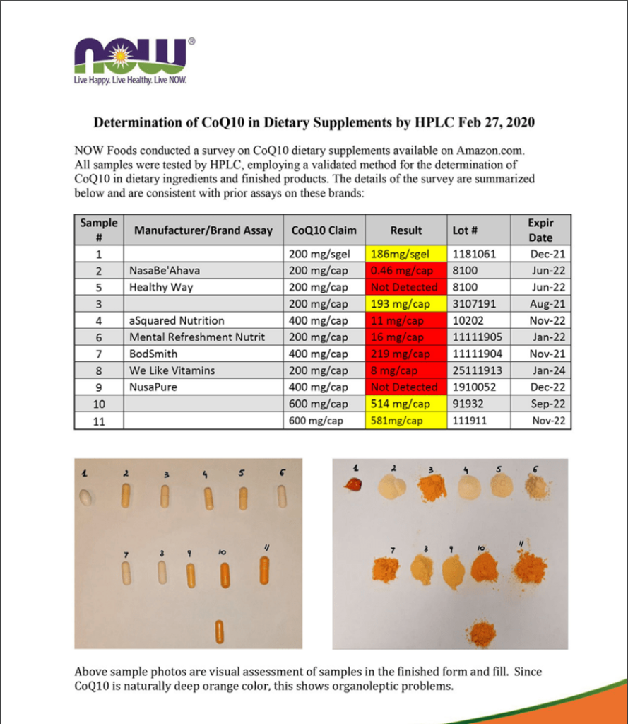 NOW recently made headlines by providing brand names of CoQ10 and SAM-e manufacturers that were found to be deficient in meeting label claims. A number of trade publications reported the story and iherb.com posted it on its website. Trust Transparency Center (“TTC”) has itself conducted tests on products containing coenzyme Q10 (CoQ10), astaxanthin, curcumin, and lutein, and TTC’s findings are similar to the NOW testing results. As part of our ongoing investigations into Amazon and other online vendors’ vetting practices, TTC has independently tested products, contacted the companies found to not meet label claims and informed them of our findings. The responses from the identified companies were typically one of these four: